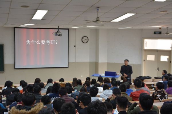 王少清院長現場統計了學生的考研意愿,并以幽默詼諧的語言講述了為什么要考研,以及如何對待考研。他強調考研是實現夢想的最佳途徑,是提升個人平臺的有效方式,是實現幸福生活的最有效手段,是提高自己綜合素質的有效過程。王院長詳細地指明本科和碩士的區別,同時也鼓勵同學們報考濟南大學的研究生。
