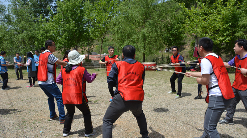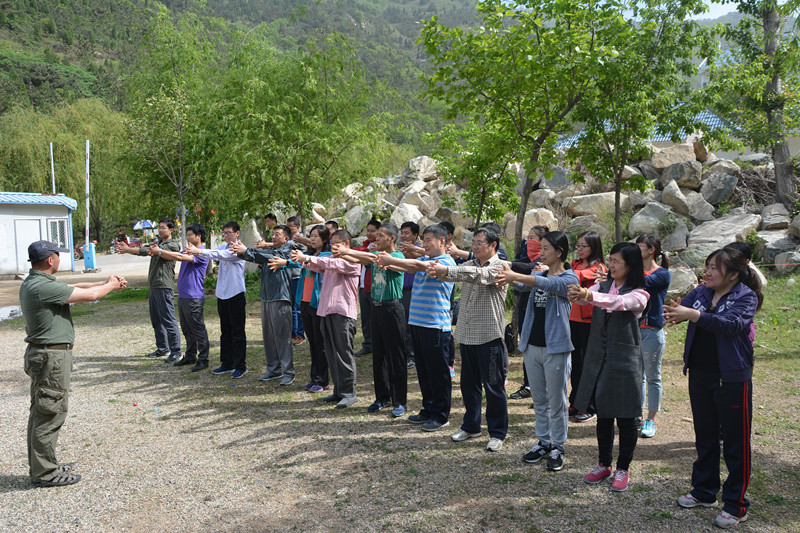 到達(dá)培訓(xùn)基地后,戶外拓展活動(dòng)正式拉開(kāi)序幕。開(kāi)班前,帶隊(duì)教練通過(guò)鼓勵(lì)大家自由分組、選取團(tuán)隊(duì)名稱、確定團(tuán)隊(duì)口號(hào)等一系列小游戲,來(lái)初步建立成員對(duì)各自團(tuán)隊(duì)的認(rèn)同、組件團(tuán)隊(duì)文化。在進(jìn)行了一個(gè)多小時(shí)的拓展破冰活動(dòng)后,又進(jìn)行了“鼓動(dòng)人心”、“挖金礦”和“無(wú)敵風(fēng)火輪”等團(tuán)建游戲,趣味紛呈的游戲幫助各位老師增加了了解、建立了信任,使大家更加緊密地融合在一起。在“鼓動(dòng)人心”游戲中,每位團(tuán)隊(duì)成員都調(diào)整自己拉動(dòng)大鼓的節(jié)奏,使團(tuán)隊(duì)步調(diào)一致、齊心協(xié)力地朝向目標(biāo)努力;在“盲人摸象”游戲中,強(qiáng)調(diào)了傾聽(tīng)的重要性和有規(guī)矩、有紀(jì)律地完成任務(wù)的意義。