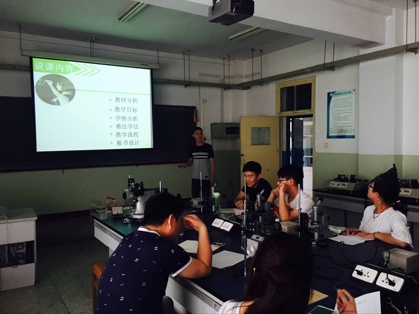 此次校賽要求選手準(zhǔn)備不少于十分鐘不多于十五分鐘的授課內(nèi)容,分為說課和講課兩部分,說課是講解這節(jié)課的授課思路,講課是選取教學(xué)環(huán)節(jié)中一部分內(nèi)容模擬授課。參賽選手經(jīng)過初賽選拔,經(jīng)驗(yàn)更加豐富,而且經(jīng)過精心的準(zhǔn)備,在說課臺(tái)上的他們更加從容,鎮(zhèn)定。從說課部分的大綱簡(jiǎn)述到講課部分的細(xì)致講解,同學(xué)們的思路清晰、表達(dá)清楚,實(shí)驗(yàn)設(shè)計(jì)新奇有趣,演示文稿美觀大方,無一不顯示了我院學(xué)生的優(yōu)秀能力和嚴(yán)謹(jǐn)態(tài)度。