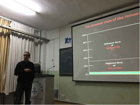 12月5日,應我院粒子物理團隊孟召霞副教授的邀請,臺灣“中央研究院”特聘研究員Rachid Mazini博士和山東大學物理學院馮存峰教授訪問我院作學術交流,并為學院本科生作報告。粒子物理團隊成員與兩位專家進行了廣泛的學術交流,對將來可能的合作方向進行了深入的討論;兩位專家對我院粒子物理學科發展提出了有價值的建議。Mazini博士為本科生作了題為“粒子世界--高能物理簡介”的精彩報告。報告面向本科生,從歷史上第一個基本粒子的發現開始,帶領大家一步步的深入探索和理解物質、能量和相互作用,并對當前粒子物理熱點課題尤其是對撞機實驗的發展作了扼要介紹。報告全程使用英文,內容精彩不斷,很多同學表示收獲很大。報告結束時,Mazini博士與同學們進行了氣氛熱烈的互動,通過提問題的方式引領同學們積極思考并踴躍回答。