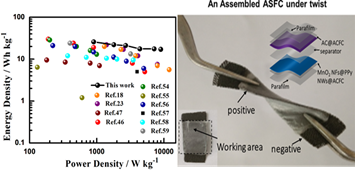 隨著便攜式電子設(shè)備需求的快速增長,柔性、輕質(zhì)的超級(jí)電容器作為一種新型的儲(chǔ)能器件,以其高的能量密度和便攜性受到廣泛的關(guān)注。該課題組采用低溫,簡單,環(huán)保的方法合成了一種以PPy納米線為導(dǎo)電骨架和以極薄的MnO2納米片為殼的微納結(jié)構(gòu)。這種核殼結(jié)構(gòu)高效地增加了MnO2的活性面積和導(dǎo)電性,通過協(xié)調(diào)利用MnO2在中性電解液中的高穩(wěn)定性和聚合物PPy的優(yōu)良導(dǎo)電性,構(gòu)建了快速、豐富、高效的電子和離子輸運(yùn)路徑。組裝的柔性超級(jí)電容器擁有杰出的穩(wěn)定性,機(jī)械柔韌性,寬的電壓窗口和高的能量密度。