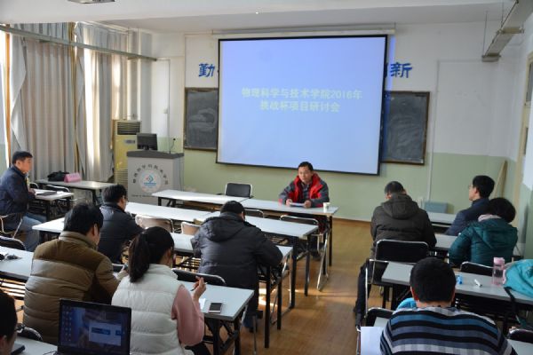 “挑戰杯”全國大學生課外學術科技作品競賽反映當前大學生勇于創新的精神風貌,是當前最具代表性、權威性、的大學生競賽,多年來吸引了眾多同學積極參與。為使參賽選手查找選送作品的不足與欠缺,更好地完善參賽項目,2016年11月23日,物理科學與技術學院于7教B402召開了“挑戰杯”賽前培訓會。學校科技處副處長王勇老師、學院黨委副書記王義老師、“泰山學者”徐錫金老師等學院數十名指導教師出席了此次培訓會。