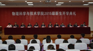2015年9月15日下午一點半,物理科學與技術學院2015級新生開學典禮在第二學術報告廳隆重舉行。學院黨委書記鄭愛華、院長王少清、副書記董海軍、副院長陳剛、各系主任、新生班主任以及學業導師等出席此次典禮,學院2015級全體新生和研究生參加。典禮由副書記董海軍主持。