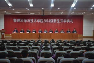 9月19日下午一點半,物理科學與技術(shù)學院2014級新生開學典禮在第二學術(shù)報告廳隆重舉行。學院黨委書記鄭愛華、院長王少清、副書記董海軍、副院長陳剛、各系主任、新生班主任以及學業(yè)導師等出席此次典禮,學院2014級全體新生參加。典禮由副書記董海軍主持。