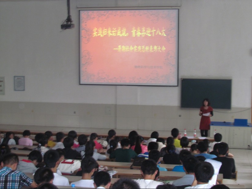 實踐歸來話成就,青春喜迎十八大。物理科學與技術學院于9月21日下午15:30在2教201成功舉辦2012年暑期社會實踐表彰大會。物理科學與技術學院團委書記馬杰老師、學辦輔導員朱思齊老師以及全體12級新生參加此次表彰大會。