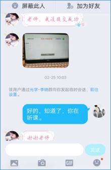 在課后,李老師認為要及時查看學生參與課堂數據,發現問題及時通過QQ交流。由于網絡授課可能會存在網絡不穩定的狀況,學生可能會被擠出課堂,通過交流可以避免雨課堂課堂數據記錄不真實的情況。此外,課后交流一方面可以督促學生認真學習,另一方面可以避免誤解學生未參與,避免學生情緒波動。