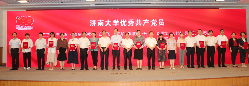 6月30日上午,濟南大學慶祝中國共產黨成立100周年暨“七一”表彰大會舉行。校領導,中層正職干部,“光榮在黨50年”老黨員代表,全省、全省教育系統、濟南大學“兩優一先”獲得者,師生黨員代表參加慶祝表彰大會。