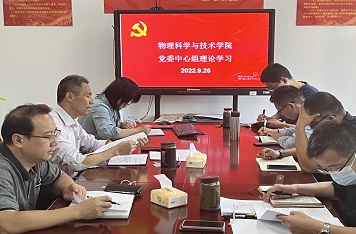 9月26日,物理科學與技術學院黨委中心組學習了習近平總書記7月26日在省部級主要領導干部“學習習近平總書記重要講話精神,迎接黨的二十大”專題研討班的重要講話內容,并結合工作實際,就貫徹落實習近平總書記重要講話精神作了深入的交流研討。