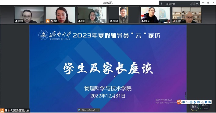 2023寒假,濟南大學物理科學與技術學院假期家訪活動如約而至,受實時疫情高峰狀況影響,本次家訪繼續以郵件、視頻電話、語音連線等方式開展,盡可能多維、全面的加強家校、師生之間的聯系與溝通。物理科學與技術學院黨委書記鄭愛華,黨委副書記、副院長章嵐,新能源系系主任黃金昭,學辦主任弋媛及我院各位輔導員老師與學院學生家庭進行視頻連線,寒冬假期已至,但學院領導老師對學生的關心愛護從不放假。