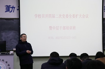 學(xué)院黨委書(shū)記鄭愛(ài)華帶領(lǐng)學(xué)院教職工學(xué)習(xí)了學(xué)校黨委書(shū)記劉春華在學(xué)校四屆二次全委會(huì)擴(kuò)大會(huì)議上作的題為《解放思想 負(fù)重前行 努力推動(dòng)高水平大學(xué)建設(shè)取得新突破》的工作報(bào)告,特別對(duì)劉春華書(shū)記進(jìn)一步強(qiáng)化黨建引領(lǐng)作用、完善學(xué)校發(fā)展頂層設(shè)計(jì)、全面提升人才培養(yǎng)質(zhì)量、全力推進(jìn)學(xué)科內(nèi)涵建設(shè)、全面提高科學(xué)研究水平、全面提升人力資源效益、全面提升開(kāi)放辦學(xué)水平、強(qiáng)化精益化管理服務(wù),系統(tǒng)推進(jìn)學(xué)校各領(lǐng)域改革,營(yíng)造更加良好的辦學(xué)發(fā)展生態(tài)開(kāi)展細(xì)致學(xué)習(xí)。他強(qiáng)調(diào),全體教職工要積極開(kāi)展人才培養(yǎng)工作,扎實(shí)推進(jìn)各項(xiàng)教育,增強(qiáng)師資隊(duì)伍建設(shè)。大家要落實(shí)立德樹(shù)人根本任務(wù),堅(jiān)決維護(hù)校園安全穩(wěn)定,進(jìn)一步強(qiáng)師德師風(fēng)建設(shè),注重轉(zhuǎn)變理念,全力完成各項(xiàng)工作。