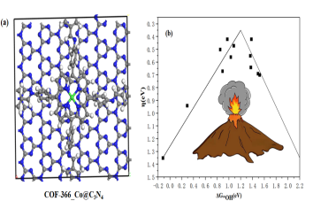 圖3 COF- 366@C3N4異質(zhì)結(jié)晶胞結(jié)構(gòu)及氧還原反應(yīng)催化過電勢(shì)火山關(guān)系圖。
