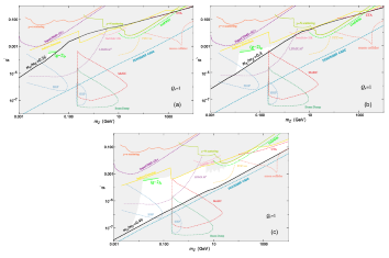 圖2:三種典型Z’通道暗物質的可行參數空間