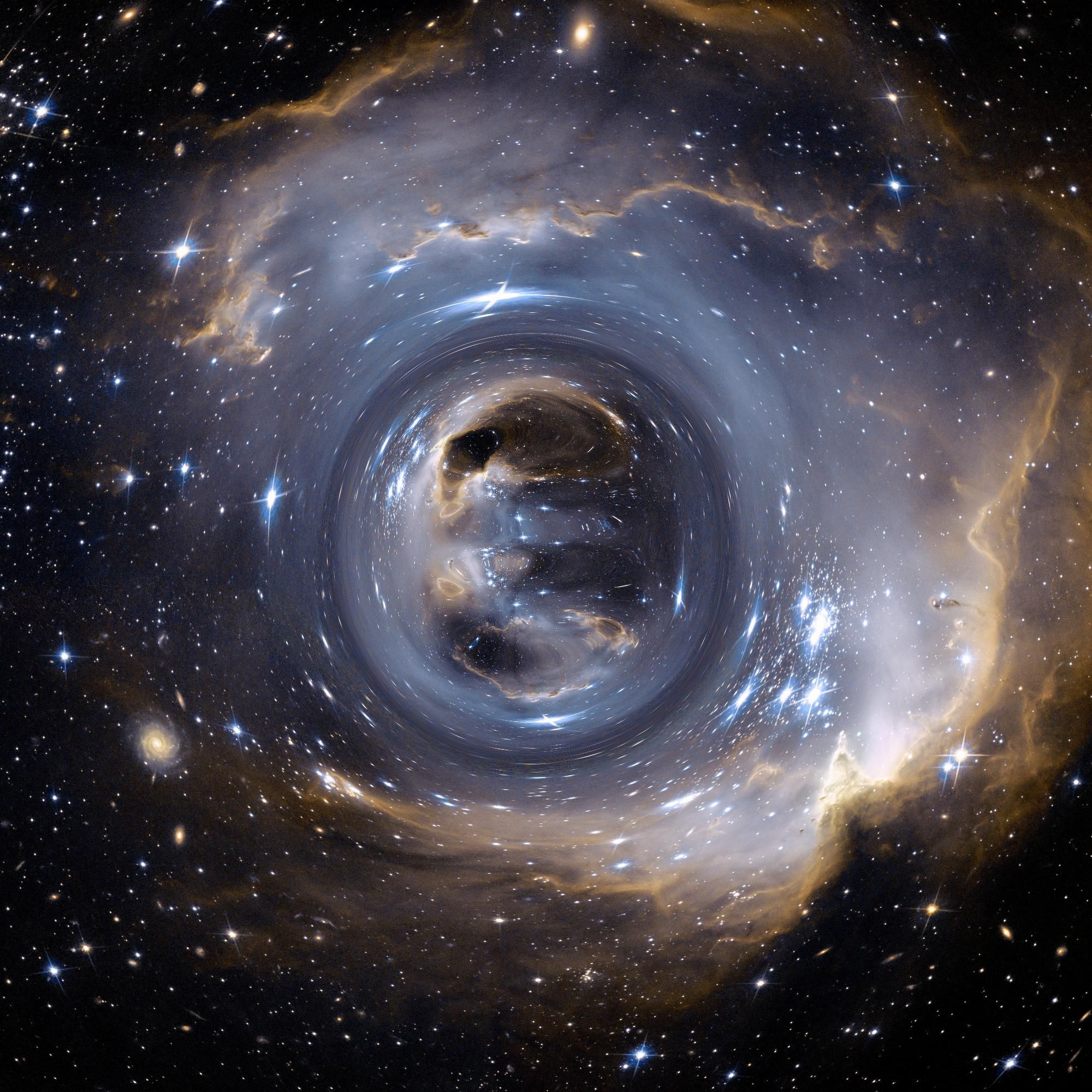 如果物理學院教學樓附近有一個玻色星,則我們經過這個玻色星看到的圖像如圖所示。