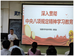 5月20日下午,新能源系教工黨支部在7JB402教室開展主題黨日活動,學(xué)院黨委副書記、院長徐錫金以“深入貫徹中央八項(xiàng)規(guī)定精神學(xué)習(xí)教育”為主題講授黨課。