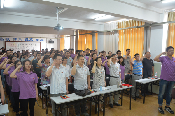 6月27日下午,學院組織今年新發展的13名中國共產黨員進行入黨宣誓,同時組織老中國共產黨員重溫入黨誓詞,全體中國共產黨員同志齊唱《國際歌》,面向黨旗莊嚴宣誓,表示對獻身于共產主義偉大事業的決心。宣誓結束后,黨委副書記王義要求全體中國共產黨員同志牢記誓言,增強歷史使命感和社會責任感,努力做一名合格的中國共產黨員。