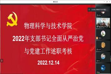 進一步提升學院黨建工作質量,推進黨支部標準化、規范化建設。12月14日,物理科學與技術學院黨委組織開展2022年度黨支部書記抓基層黨建工作述職考核和黨支部評星定級工作。學院領導班子、支部書記以線下、線上結合的方式參加會議。會議由學院黨委書記鄭愛華主持。