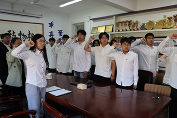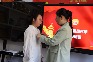 隨后,學院團委書記歐陽陽和老團員代表們一起,逐一為新團員佩戴上團徽,這一刻,新團員們正式成為了共青團大家庭的一員。佩戴團徽不僅是對他們身份的認可,更是對他們未來成長道路上的期許和鞭策。