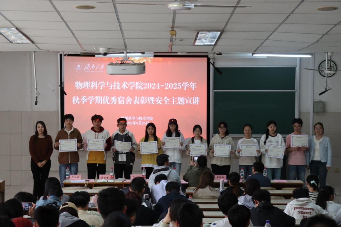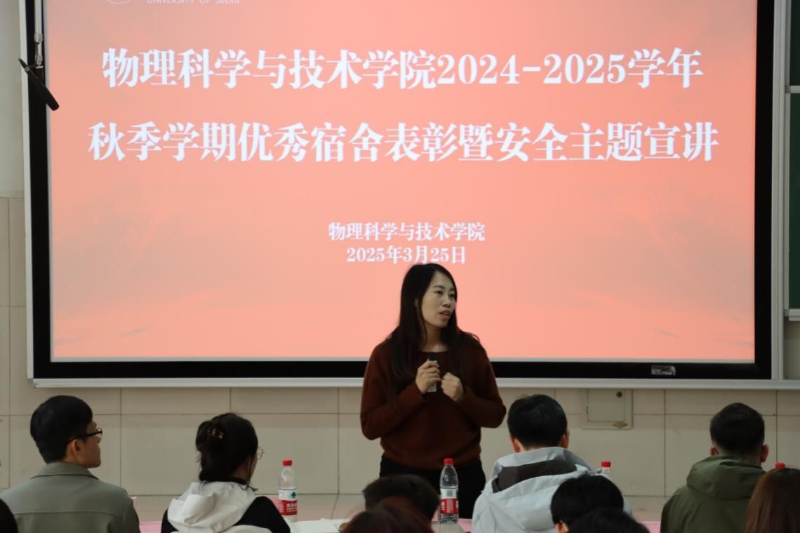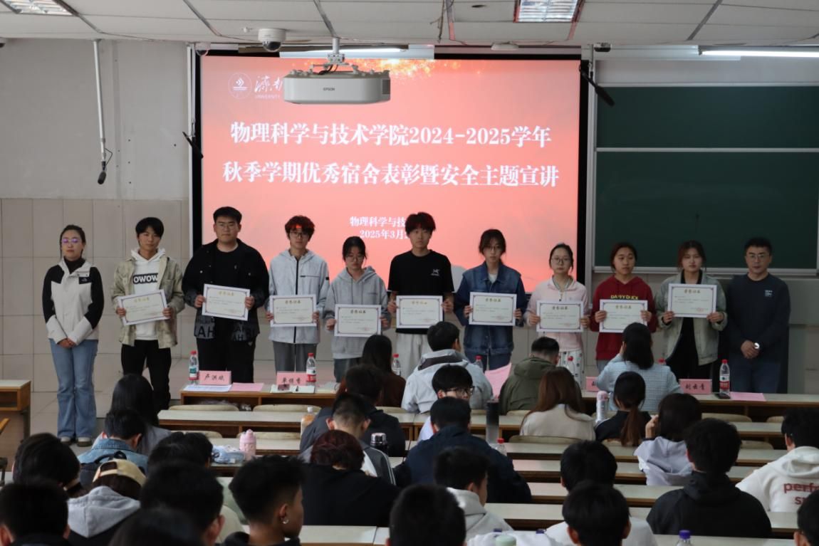 為激勵(lì)同學(xué)們積極創(chuàng)建文明宿舍,切實(shí)消除宿舍安全隱患,物理科學(xué)與技術(shù)學(xué)院于3月25日下午舉行2024-2025學(xué)年秋季學(xué)期優(yōu)秀宿舍表彰暨安全主題宣講活動(dòng)。