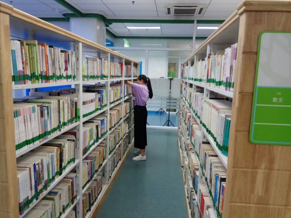 清晨,志愿者在領隊的帶領下早早的來到山東省少年兒童圖書館,聽從工作人員的安排,負責著自己管理的書架,仔細檢查著每一本書有沒有按色標排序,是否整齊。志愿者還幫助讀者查找圖書的位置,解決讀者的疑問,引導讀者讀書。有的小孩子們也對此十分感興趣,而且還爭著搶著要跟志愿者們分享他們有趣的故事。