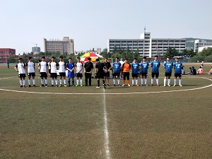 5月9日下午三點半,迎來足球賽第一場比賽。賽場上,物院隊員們卯足了勁兒,他們在綠蔭場上激情馳騁、奮力拼博,按照賽前布置的戰術要求,打好每一分鐘,捕捉每一個機會,踢出了精神,賽出了水平。
