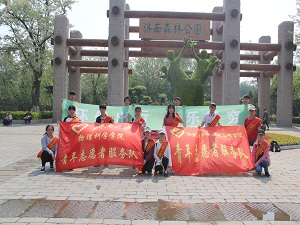 到達騎行路線約三分之二時,志愿者們按計劃在路旁的一個綠化地休息。雖然氣溫有些高,志愿者們的額頭上已滲出星星點點的汗珠,但他們并不覺累,反倒覺得很輕松,歡聲笑語,交流著一路上騎行的樂趣。休息過后,志愿者們再次踏上行程,他們以再次充盈的體力很快到達目的地。志愿者們于森林公園門口在此次騎行活動的條幅上簽下自己的名字并合影留念。