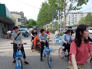 風輕云淡,陽光和煦。在這樣一個晴朗的早上,志愿們提前找好共享單車在集合地點等候,整裝待發。人員到齊,在領隊江蘇細心講解路線及注意事項之后,志愿者們便啟程出發,前往規劃地點——濟南市森林公園。領隊江蘇在隊前領路,志愿者們前后保持一定距離騎行。志愿者們在路上不急不躁,徐徐前行,過馬路時有條不紊,形成了一道亮麗的風景線。
