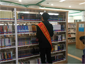在活動當天,志愿者們的主要任務是協助館內人員進行館內圖書的整理和正常秩序的維持。旨在為大家營造一個安靜、舒適的閱讀環境,共同打造和諧“書 香”世界。 這里是與城市的浮華喧囂迥然不同的充盈著靈動書香的世界,志愿者們在這里整理圖書,規范秩序的同時也感受到圖書館的濃厚文化氛圍。志愿者們的辛苦工作,為孩子們借閱圖書帶來了便利,也為孩子們創造了一個更好的學習環境,使圖書館成為了孩子們的心靈家園。同時圖書館工作人員繁重的工作任務也得到了減輕。志愿者們充分體會到了本次活動的意義所在。
