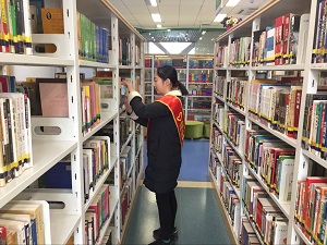 活動當天,志愿者一行人在部長的帶領(lǐng)下前往圖書館。在工作人員口頭交代任務(wù)之后,他們分工合作,有條不紊地把一本本遺落在書桌上和讀者歸還的圖書一一分類放回原處。同時,志愿者們還耐心地為來找書或看書的小讀者們解答有關(guān)讀書方面的咨詢,幫助他們更好地找到自己感興趣的書籍。為了讓讀者們更迅速,更方便地借閱書籍與查找圖書,志愿者們還耐心地一一示范教給讀者們?nèi)绾问褂媒枳x機,以及如何在手機上根據(jù)圖書的位置快速準確地找到所需要的圖書。
