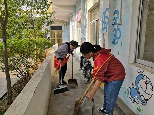 活動(dòng)開展過程中,志愿者們幫助天翼的老師們打掃教室,美化環(huán)境,盡力為小朋友們營造溫馨舒適的生活學(xué)習(xí)環(huán)境,雖然忙碌但快樂著。志愿者們?cè)趧趧?dòng)的同時(shí)不忘跟小朋友們親切互動(dòng),他們一起玩耍,一起學(xué)習(xí),讓孩子們感受到我們都一樣的勇敢,一樣的堅(jiān)強(qiáng)。