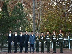 7時整,升旗儀式正式開始。護旗手昂首挺胸,邁著鏗鏘有力的步伐護衛國旗入場,伴隨著莊嚴的國歌,鮮艷的五星紅旗冉冉升起。全體人員肅立,行注目禮,對祖國致以崇高敬意。