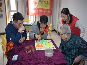 為弘揚(yáng)中華民族愛老、敬老、助老之傳統(tǒng)美德,豐富老年人的精神文明生活,在3月9日這天志愿者們?cè)陬I(lǐng)隊(duì)王瓏航的帶領(lǐng)下去探望了槐蔭區(qū)社會(huì)福利服務(wù)中心醫(yī)院中的老人,送給他們了溫暖,帶給他們了歡樂,送與他們祝福,陪伴他們?nèi)ジ玫纳睢?/span>