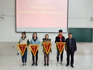 三月微風浮動,四月潤雨如酥。4月9日,在這個涼雨如織的下午,物理科學與技術學院舉辦了2018-2019學年第一學期優秀宿舍表彰活動。學院書記、學生工作辦公室老師、班長、團支書及舍長參加了此次活動,活動由朱思齊老師主持。
