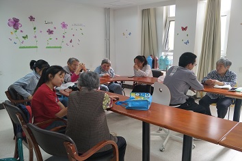 當天上午十時許全隊成員抵達敬老院,一走進敬老院大門,便看到老人已經院子里坐好,歡迎我們的志愿者們。細心的同學不但自發的購買了水果和蛋糕等慰問品,還準備了文藝節目送給老人。在整個活動期間,志愿者們通過陪老人下棋,教老人使用手機,和老人們一起做手工,還有陪他們聊天等途徑使敬老院頓時縈繞著歡聲笑語。