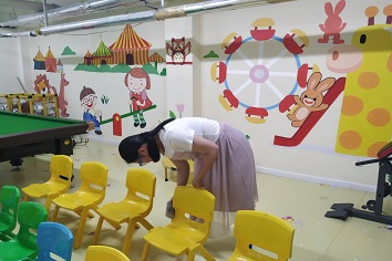 志愿者們一來到康復中心先幫助康復中心工作人員打掃衛生。之后志愿者們鼓勵孩子們圍繞著主題“summer夏天”進行繪畫,畫出他們眼中的夏天,孩子們靈感滿滿,很快就拿著畫筆進行創作,隨即涌現出的繪畫天賦也讓現場的志愿者們拍手鼓掌。此外游戲也是必不可少的,志愿者和孩子們玩起了貓捉老鼠的游戲,在娛樂中幫助他們進行一些恢復性的訓練。最后在相關工作人員的帶領下,和天翼的自閉癥兒童進行聯歡活動。,志愿者們漸漸的融入了孩子們的群體,志愿者和孩子們之間的氣氛非常愉快,笑聲連續不斷,活動在這樣的氛圍中畫上了圓滿的句號。