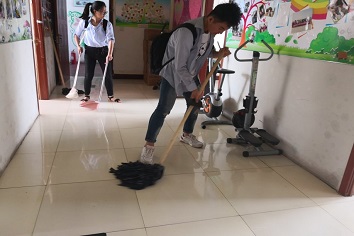 在志愿活動中,志愿者們不僅幫殘疾人們進行康復訓練,仔細聆聽殘疾人們心中的煩惱,并主動出謀劃策,為他們排憂解難。志愿者們還提前準備了糖果,零食給予他們分享,并吟唱家喻戶曉的歌謠,為他們講述有趣的故事,場面一度其樂融融。遇到布滿灰塵的地面和不干凈的窗臺桌面,團結勤勞的志愿者們也拿起掃帚和抹布,主動積極的加入打掃。在志愿活動中,我校志愿者收到了工作人員和兒童家長的贊揚,為活動劃下一個完美的句號。