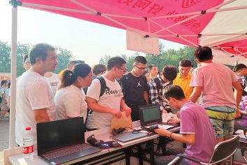 縱然是模樣青澀的你,縱然是辛苦奔波的你,我仍看到了你的積極向上,我仍沉迷于你的如火熱情。上午七點開始,就陸陸續續有小萌新們來報到,學長學姐給他們掃碼報到、發放資料及校園卡。