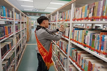 一早志愿者們就在領(lǐng)隊(duì)的帶領(lǐng)下一起乘公交車到達(dá)圖書館。在圖書館幫助工作人員整理書籍,幫助讀者借書還書,志愿者們相互配合,整理好每一本書,維護(hù)好圖書館秩序,讓小朋友們感受到我們的熱情,給予他們更多幫助。活動(dòng)結(jié)束后,所有志愿者們集合乘公交車返回學(xué)校。