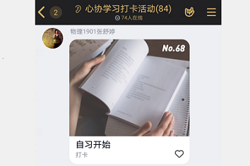 為提高學生因疫情宅家的這段時間的學習效率,增強學生的學習熱情,物理科學與技術學院心理發展服務中心于5月26日開始在線上舉辦“一個人的自習室”的學習打卡活動。