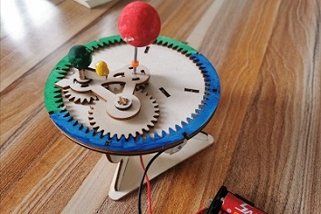 8月5日,服務隊中身住濟南萊蕪區的亓志昊同學,借助輔導班教課的便利,進行了多次線下科普志愿服務。8月5日上午八點半,亓志昊同學像往常一樣上班,但這次與以往不同的是,他帶了來三球儀(又稱月地運行儀是一種天文教學和天文普及儀器),三球儀由代表太陽、地球和月球的三個小球組成,并有機械聯動裝置,用以演示三球關系和由此產生的一些天文現象。亓志昊同學通過與小朋友們共同組裝三球儀,通過一塊動手組裝,讓小朋友們感受到了科學的樂趣,組裝完成后,將電源接通,看著太陽、地球、月球的相互運動,小朋友們發出了驚呼,感嘆科學的神奇。亓志昊同學借助三球儀向小朋友們解釋了太陽、地球、月球各自的運動規律,以及天體運動對地球上人們生活的影響,小朋友們聽的津津有味。講解完之后,小朋友們追問亓志昊同學了許多問題,亓志昊同學也非常高興的用通俗易懂的語言回答了他們。