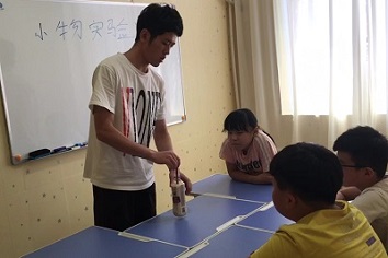 8月10號上午八點半,李兆航同學(xué)來到暑假兼職的輔導(dǎo)班,與以往不同的是,這次他帶來了一些“裝備”,一個礦泉水瓶、一些大米、一根筷子。上課伊始,李兆航同學(xué)先是讓小朋友們試著操作怎樣用一根筷子將瓶子提起來,小朋友們各有各的想法,大家輪流試了一遍,發(fā)現(xiàn)在沒有老師揭秘的情況下,想把瓶子提起來不是一件容易事。然后,李兆航同學(xué)遍向小朋友們演示了正確的提瓶方法:將大米倒入瓶子,把筷子垂直的插入瓶子底部,然后緩緩地提起筷子,這樣便可以輕松地將裝滿大米的礦泉水瓶提起來啦。小朋友們拍手叫好,感嘆科學(xué)的神奇。演示實驗完畢后,小朋友們紛紛發(fā)出疑問:為什么這樣做就可以把重重的瓶子提起來了?李兆航同學(xué)借著小朋友們的疑問,向大家解釋了大氣壓、摩擦力的知識,小朋友們聽得津津有味。講解完原理之后,好學(xué)的小朋友們還追問了李兆航同學(xué)許多問題,李兆航同學(xué)也耐心且通俗地向他們解答了問題。