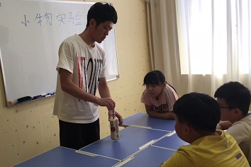8月10號上午八點半,李兆航同學來到暑假兼職的輔導班,與以往不同的是,這次他帶來了一些“裝備”,一個礦泉水瓶、一些大米、一根筷子。上課伊始,李兆航同學先是讓小朋友們試著操作怎樣用一根筷子將瓶子提起來,小朋友們各有各的想法,大家輪流試了一遍,發現在沒有老師揭秘的情況下,想把瓶子提起來不是一件容易事。然后,李兆航同學遍向小朋友們演示了正確的提瓶方法:將大米倒入瓶子,把筷子垂直的插入瓶子底部,然后緩緩地提起筷子,這樣便可以輕松地將裝滿大米的礦泉水瓶提起來啦。小朋友們拍手叫好,感嘆科學的神奇。演示實驗完畢后,小朋友們紛紛發出疑問:為什么這樣做就可以把重重的瓶子提起來了?李兆航同學借著小朋友們的疑問,向大家解釋了大氣壓、摩擦力的知識,小朋友們聽得津津有味。講解完原理之后,好學的小朋友們還追問了李兆航同學許多問題,李兆航同學也耐心且通俗地向他們解答了問題。