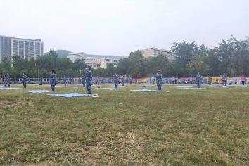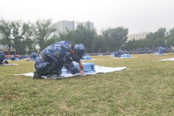 下午三點,物理學(xué)院新生已經(jīng)到達北苑操場,在各助班、宿導(dǎo)的帶領(lǐng)下列隊等待,身背自帶被具,為比賽做著準備。開幕式上樓管會負責(zé)人代表學(xué)校向新生致辭,希望新生能通過此次疊軍被大賽加強對整理宿舍內(nèi)務(wù)的重視,培養(yǎng)團隊精神和集體榮譽感。隨后,各學(xué)院間進行拉歌,他們精神飽滿、士高氣昂,展現(xiàn)出朝氣蓬勃的精神面貌。翼虎軍團的教官向同學(xué)們進行疊軍被標(biāo)準演示,講解疊軍被的具體要求,以及此次比賽的流程和獎項設(shè)置。