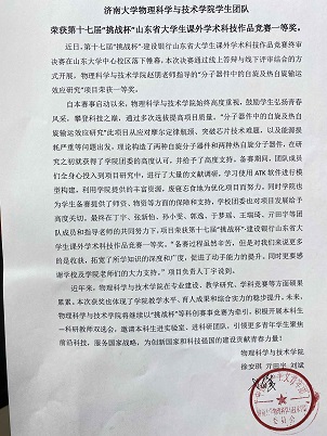 自本賽事啟動以來,物理科學與技術學院始終高度重視,鼓勵學生弘揚青春風采,攀登科技之巔,通過多次選拔提高項目質量。“分子器件中的自旋及熱自旋輸運效應研究”此項目從應對摩爾定律瓶頸、突破芯片技術難題,以及能源損耗嚴重等問題出發,理論構造了兩種自旋分子器件和兩種熱自旋分子器件,在研究之初就獲得了學院團委的高度認可,并給予了高度支持。備賽期間,團隊成員們全身心投入到項目研究中,進行了大量的文獻調研,學習使用ATK軟件進行模型構建,利用學院提供的豐富資源,廢寢忘食地為優化項目而努力。同時學院也為學生備賽提供了師資、物資等方面的保障和支持,學校團委也對項目發展給予高度關切。最終在丁宇、張新怡、孫小雯、郭逸、于夢瑤、王瑞琦、亓田宇等團隊成員和指導老師的共同努力下,項目榮獲第十七屆“挑戰杯”·建設銀行山東省大學生課外學術科技作品競賽一等獎。“備賽過程雖然辛苦,但是對我們來說更多的是收獲,拓寬了所學知識的深度和廣度,促進了動手能力的提升。同時更要感謝學校及學院老師們的大力支持。”項目負責人丁宇說到。