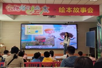 活動開始前,在志愿者們的帶領下小朋友與其家長一起跳了親子舞,活躍現(xiàn)場氛圍。活動開始進行,志愿者們根據(jù)小朋友好奇、喜歡探索的心理,結合開發(fā)閱讀興趣的需求選擇繪本,以游戲、趣味活動等方式幫助孩子了解自然科普、自我認知、行為習慣培養(yǎng)等方面的內容。一位志愿者講了《小老鼠大鯨魚》,一個關于友情的故事,充滿魔力又發(fā)人深思。兩位主人公一個龐然大物,一個微乎其微。他們在一起時,互幫互助,彼此欣賞,盡管知道可能永遠不會再見面,但也知道永遠不會忘記彼此。深厚而單純的感情,可以讓孩子們理解到,真正的愛可以超越時間和空間。志愿者們用生動有趣的語言和肢體動作,聲情并茂地把繪本故事活靈活現(xiàn)地展現(xiàn)給大家,每一位孩子和家長都身臨其境。