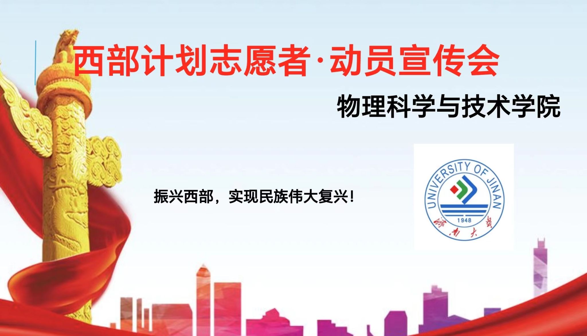 為進一步推動西部地區經濟社會發展,引導青年力量參與西部建設,濟南大學物理學院西部計劃志愿者的動員宣講會于11月24日在濟南大學隆重舉行。本次宣講會由物理科學與技術學院主辦,與物理學院志愿者共同探討西部地區的發展問題,助推脫貧攻堅工作,以鼓舞激勵更多青年大學生投身西部建設。