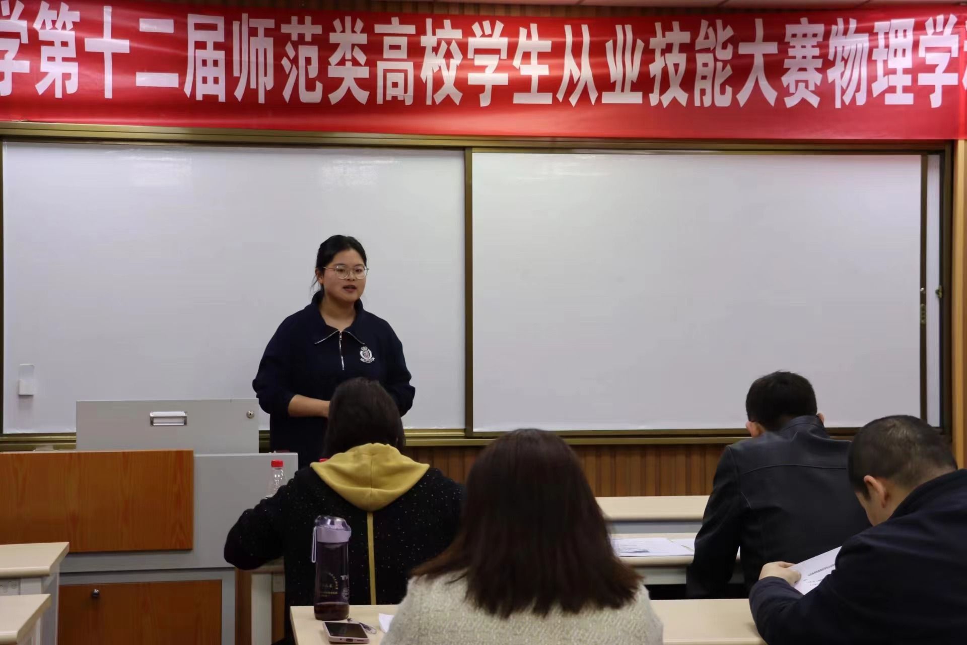 為強化師范生從教基本技能教學與訓練,提升師范生的教學技能、實踐能力和綜合素質,推進教師教育持續健康發展,4月2日,由物理科學與技術學院承辦的第十二屆師范類高校學生從業技能大賽(物理學科)校級決賽在七教A607舉行。