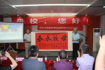 校友代表劉志林深情回顧了在學校求學期間的點點滴滴,從濟大求學之路到工作奮斗之路,從恩師教導到同窗友誼,他表示,盡管畢業離開母校,但一如既往的關心關注和支持母校的發展與進步,并向物理科學與技術學院徐錫金院長贈送了由中國書協會員、山東省書協行書委員會副主任胡宗江先生書寫的“母校永春”書法作品。
